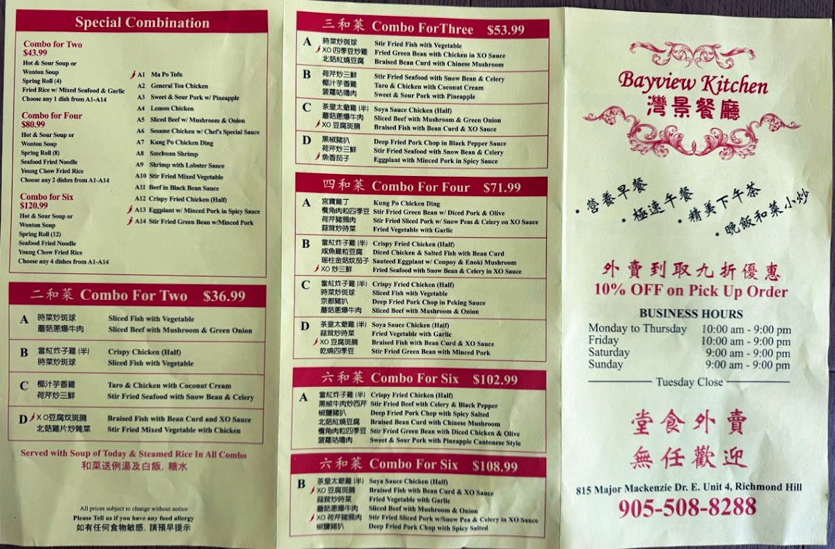 Bayview Kitchen Menu