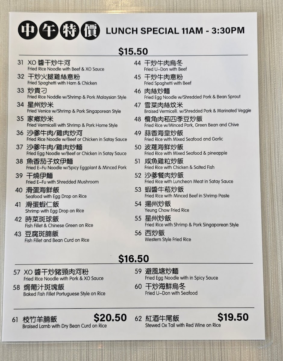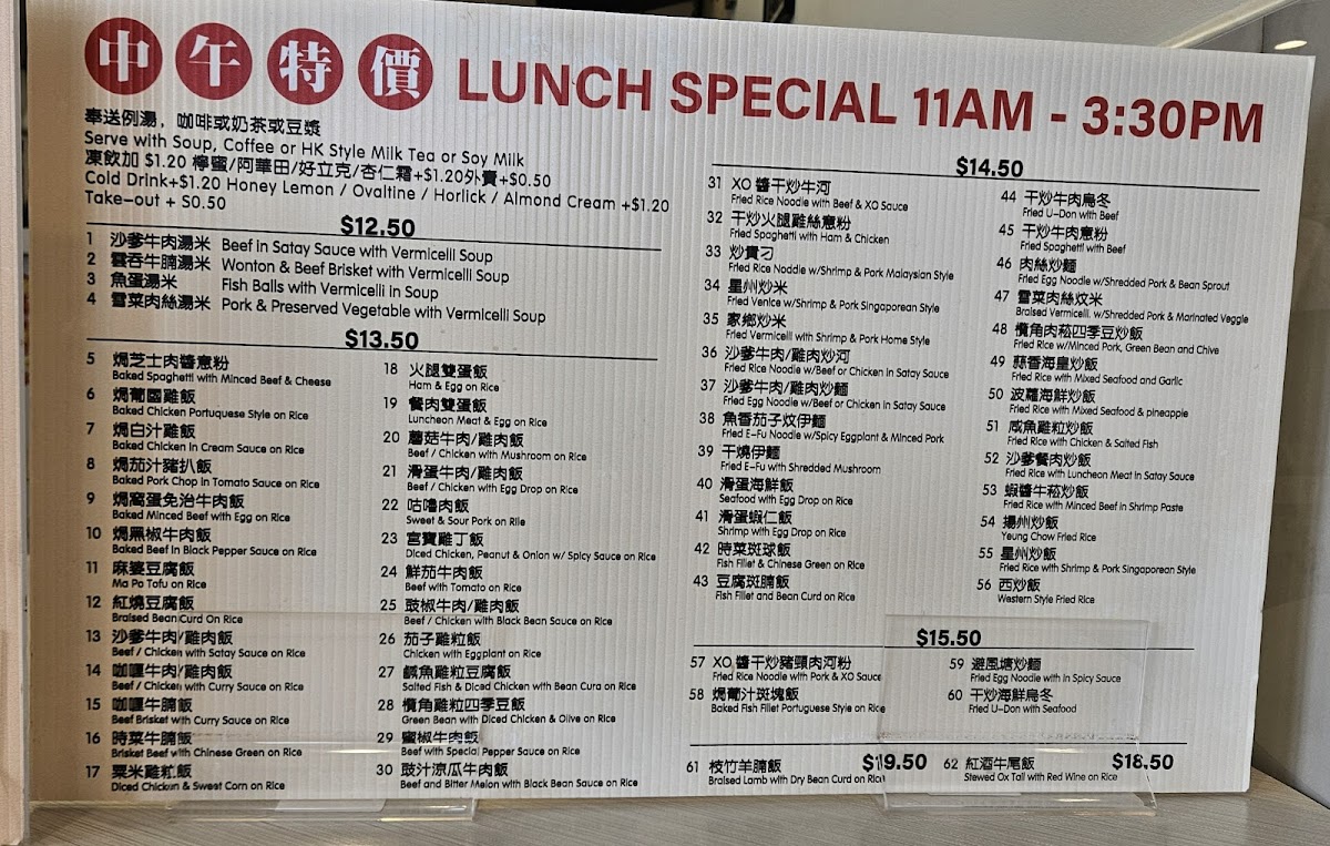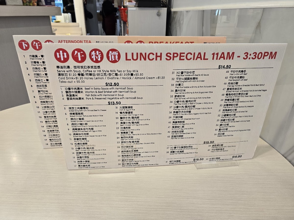 Drinks like Hong Kong-style milk tea and iced lemon tea provide a refreshing balance to the savory dishes, capturing the casual café spirit that many visitors appreciate. Whether you're craving braised beef, seafood in XO sauce, or even oven-baked spaghetti, the menu offers comforting, approachable choices that fit well with everyday dining moments.